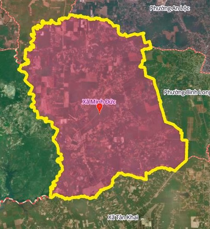 Xã Minh Đức nằm ở trung tâm phía tây của Hớn Quản, giáp: