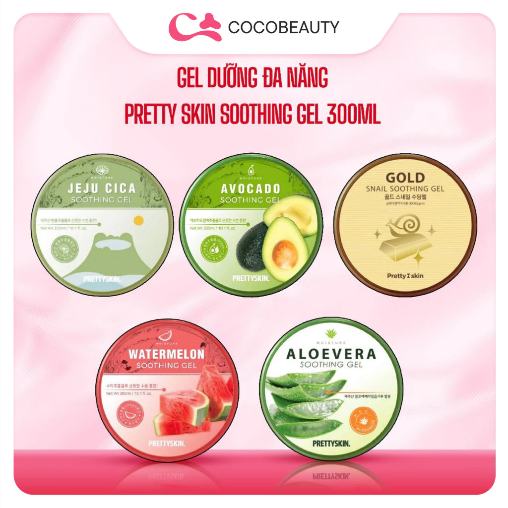 Giới Thiệu Gel Dưỡng Đa Năng Rau Má / Dưa Hấu / Ốc Sên Soothing Gel Pretty Skin 300ml