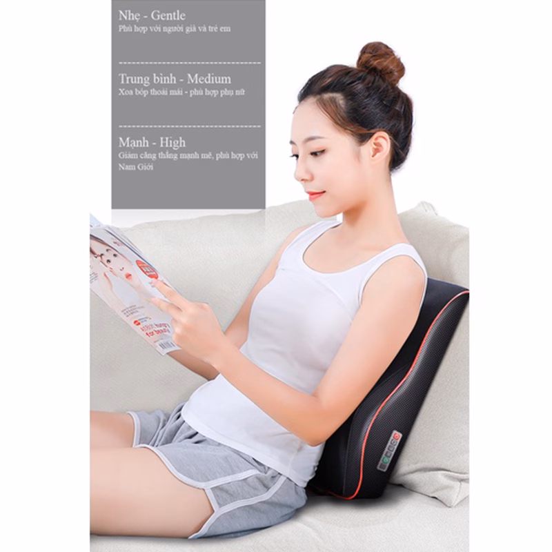 - Giảm căng thẳng và mệt mỏi: Gối massage tựa đầu giúp giảm căng thẳng và mệt mỏi bằng cách massage các vùng cơ trên cổ và vai.