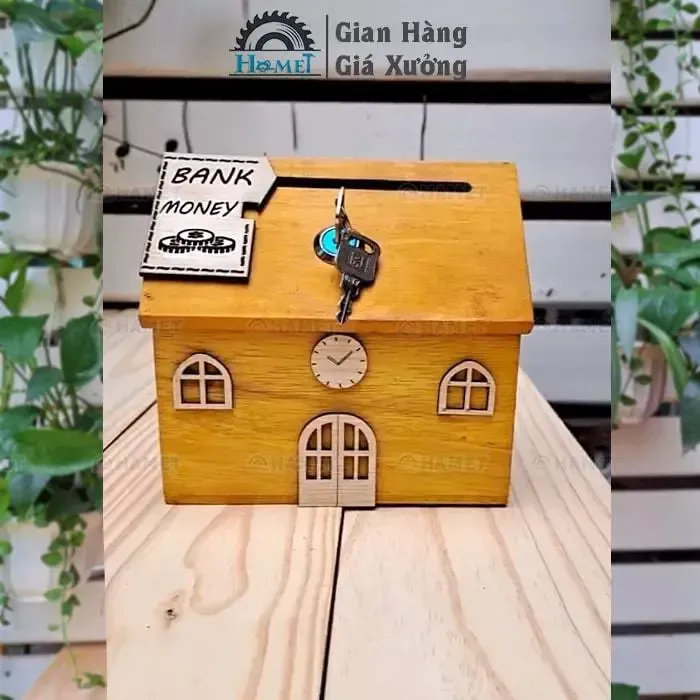 Nếu bạn đang tìm kiếm một hộp đựng tiền tiết kiệm bằng gỗ có khóa phù hợp, hãy tham khảo hộp đựng tiền tiết kiệm bằng gỗ có khóa hình ngôi nhà xinh xắn. Sản phẩm này được thiết kế với hình dạng ngôi nhà xinh xắn, mang lại cảm giác dễ thương và thú vị.