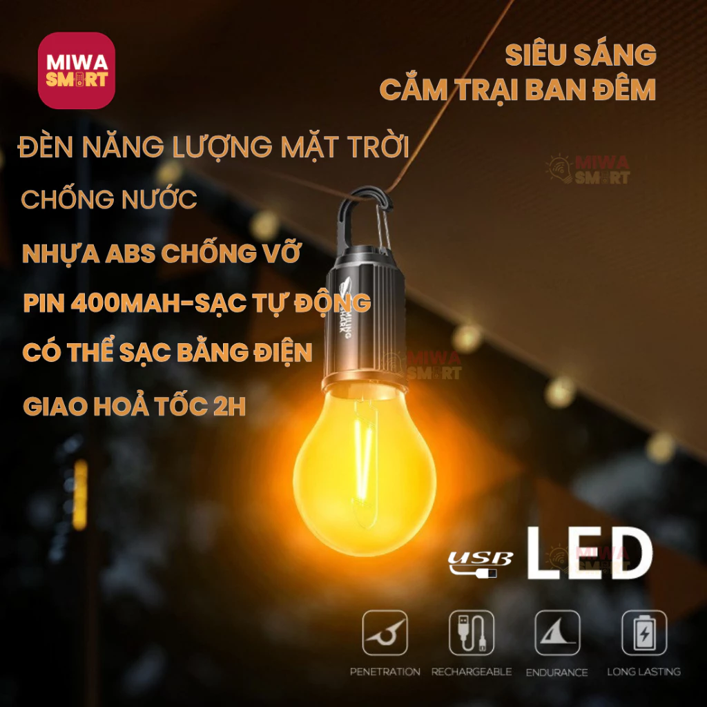 🔥 Bóng đèn Năng lượng Mặt trời có thể sạc trực tiếp 500 mah 3 chế độ ánh sáng chống vỡ chống nước nhỏ dọn dễ treo móc đang giảm giá!