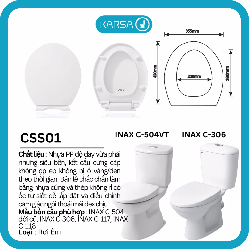 🔥 Nắp bồn cầu thay thế Inax Toto american standard viglacera caesar thiên thanh chính hãng KARSA Cao Cấp đang giảm giá!