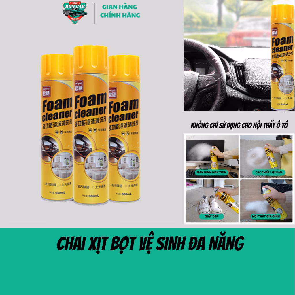 🔥 Chai Xịt Bọt Đa Năng Vệ Sinh Nội Thất Ô Tô FOAM CLEANER 650ML, Bình Xịt Tẩy Rửa Vết Bẩn Xe, Vệ Sinh Ghế Sofa, Giầy Dép.. đang giảm giá!