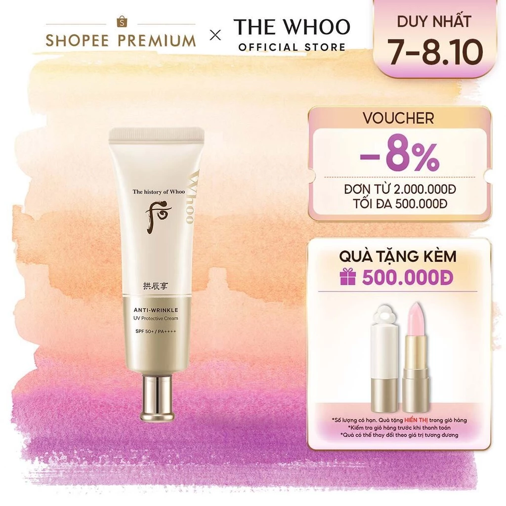 🔥 [THE WHOO OFFICIAL] Kem chống nắng cải thiện nếp nhăn Whoo Gongjinhyang Anti-Wrinkle UV Protective Cream SPF 50+, PA++++ đang giảm giá!